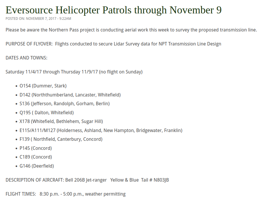 2016: PAR report on removal of poles dumped in WMNF by PSNH during 1986 replacement, without roads or construction pads, of the 1948 line. This project was initiated by the Easton Conservation Commission. Eversource plans to build the new line and new permanent roads and construction "pads" in areas Eversource deemed too vulnerable for pole removal.