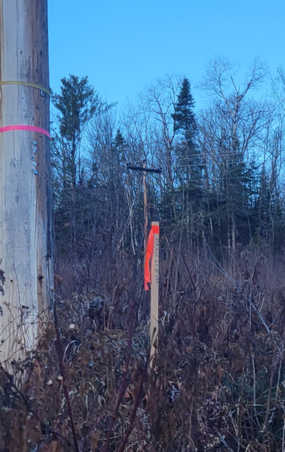 2024, November 28: Recently staked location for new structure 420, X-178 (3), at Route 116/18 below Gilmanton Hill Rd.