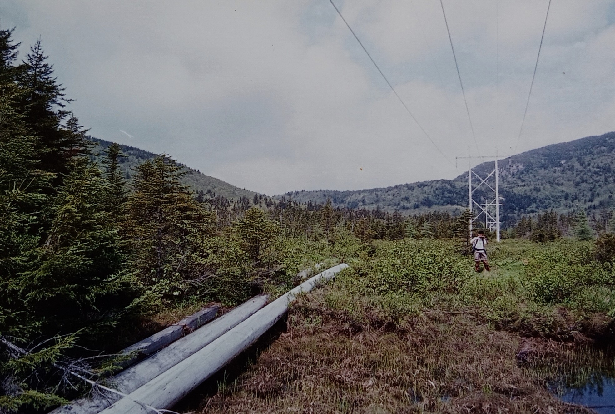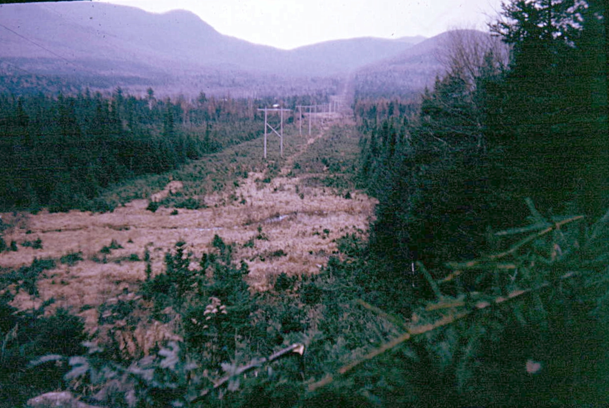 1970, November: powerline and easement before the 1985 rebuild, Easton, looking towards Reel Brook watershed. Herbicide spraying was done during this time.