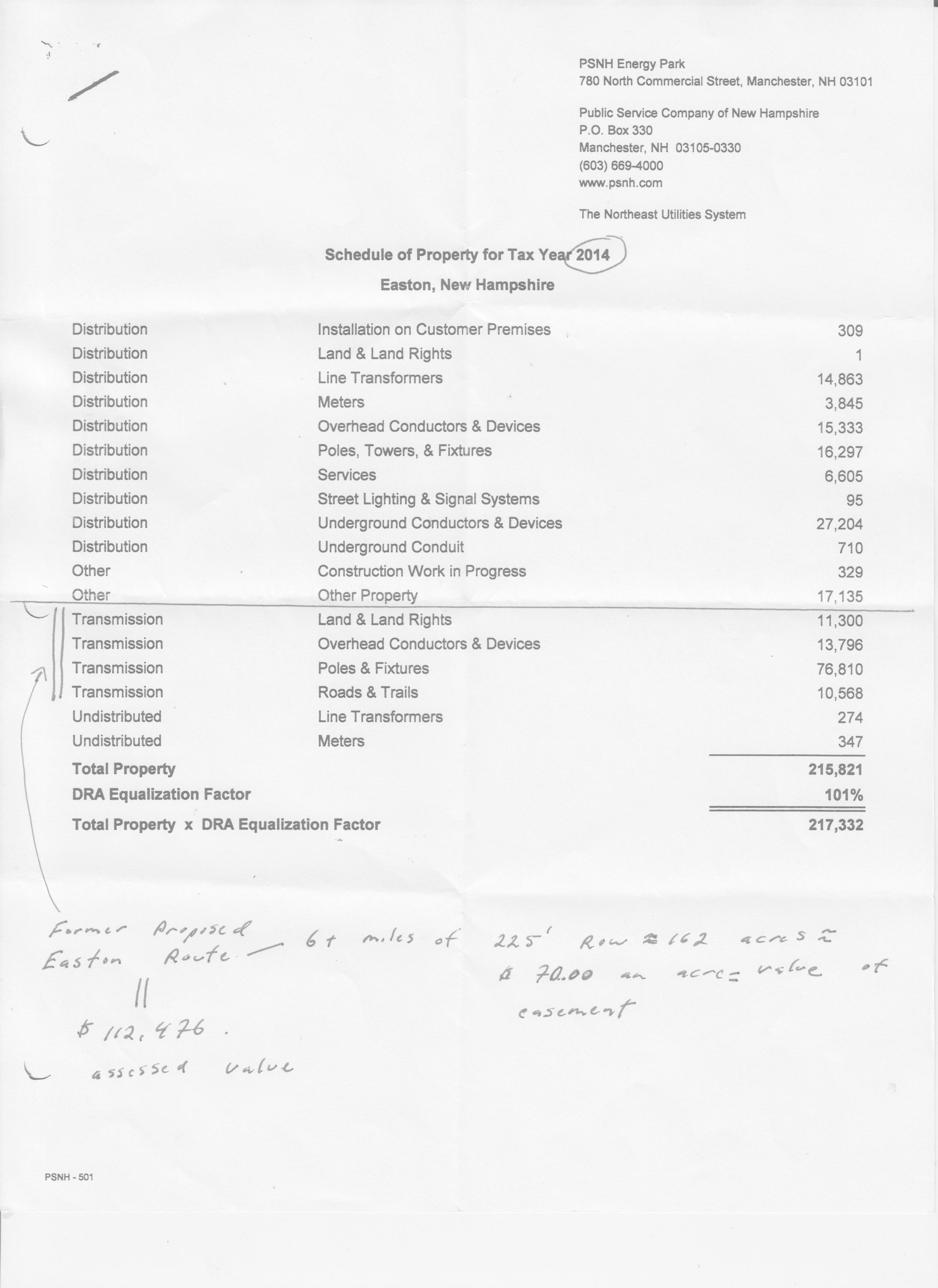 2014: Eversource valuation of ROW and infrastructure in Easton