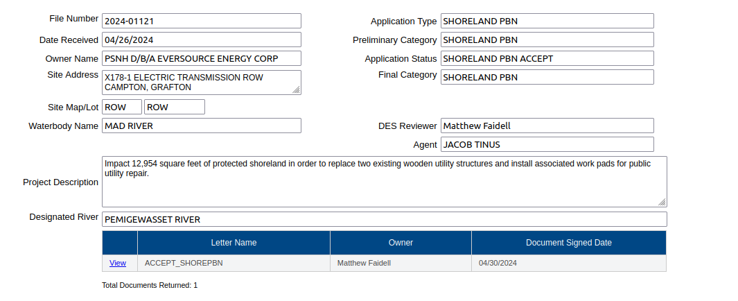 2025, March 14: Eversource withdraws DES permit requests for geotechnical boring in WMNF.
